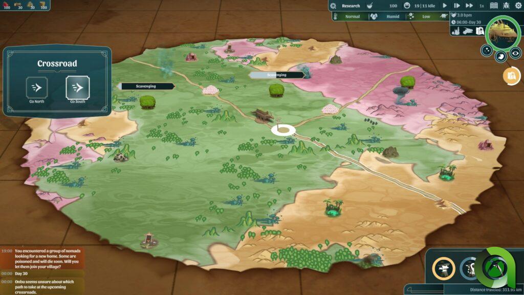 La cámara del juego tiene varios niveles de zoom para ofrecer varias vistas estratégicas. Al desviar nuestra atención de Onbu obtenemos una visión más amplia, revelándose ante nosotros un mundo vasto que espera ser explorado. Podemos y debemos enviar valientes exploradores a las minas, bosques, asentamientos y áreas contaminadas para obtener recursos útiles para nuestra supervivencia. Además, tendremos una visión general de los caminos que nuestra aldea recorrerá a lomos de la criatura gigante. Si hemos establecido una buena relación con Onbu, tendremos la ventaja de elegir las direcciones en los cruces, tomando los caminos más beneficiosos para nosotros.