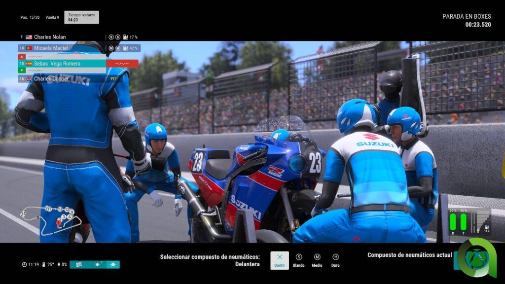 Con las motos sucede lo mismo, hay de todo tipo y de todas las épocas… Suzuki, Kawasaki, Aprilia, Honda, Ducati, las principales marcas están ahí. Nuestra colección irá aumentando a medida que corramos los diferentes actos del modo Trayectoria, sumando motos en forma de recompensa o adquiriéndolas con los créditos ganados. La presentación de las mismas refleja que, efectivamente, estamos ante un juego para entusiastas hecho por entusiastas. También se han incluido algunas animaciones de transición entre las carreras, y ahora podemos conseguir la mejor posición optando por la clasificación a una vuelta en todos los modos.