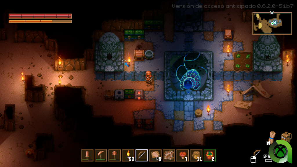 En Core Keeper también tenemos un sistema de progresión, cada acción cuenta. Pescar nos sube la pesca, minar el minado, matar enemigos la lucha, etc. Además también podemos adquirir habilidades y mejorar diferentes apartados.