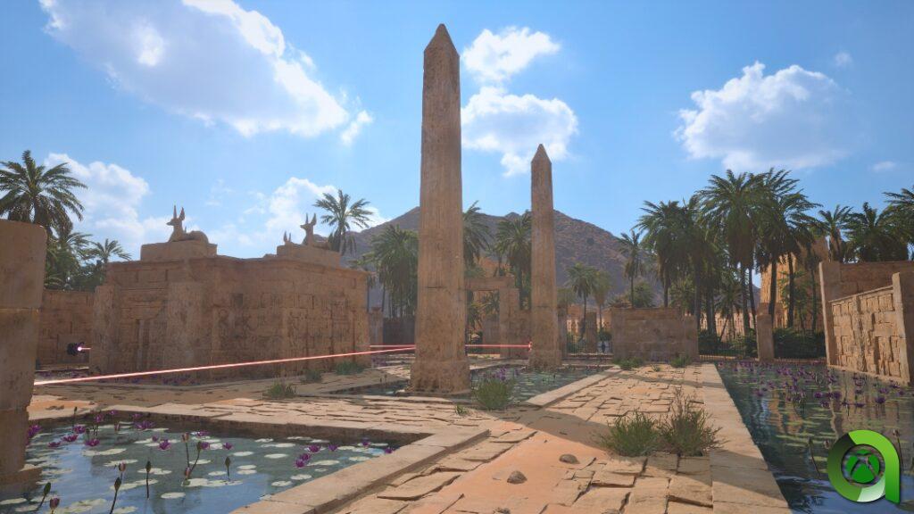 La mayor parte del tiempo, los puzles del juego se desarrollan en parajes naturales plagados de vegetación, donde nos adentraremos en las sobrecogedoras estructuras de hormigón que se esconden tras la maleza. Los primeros instantes ya son bastante potentes, pues los puzles del tutorial se encuentran frente a las imponentes pirámides de Guiza. Desde este punto, ya se puede apreciar el gran trabajo del estudio en materia de iluminación, y en general, modelados cargados de detalle por cada escenario que pisamos. No os podéis perder tampoco el paseo obligado por la «Nueva Jerusalén», pues se ve preciosa, como podréis apreciar en las capturas.
