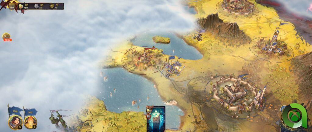 En cuanto a las tropas en sí, podemos reclutar en las zonas conquistadas, o en el caso del mago-sacerdote, invocarlas directamente. Cada una tiene un coste de recursos, ya sea de oro, fe o ambas. Además, cada tipo de unidad tiene sus estadísticas, pros y contras y nivel. Al igual que los héroes, cada uno tiene sus estadísticas, habilidades y, ojo, cartas propias, por lo que hay que jugar con qué tropas asignar a cada uno.