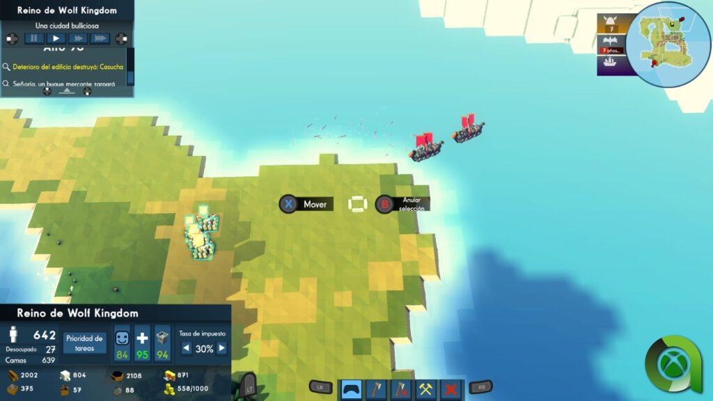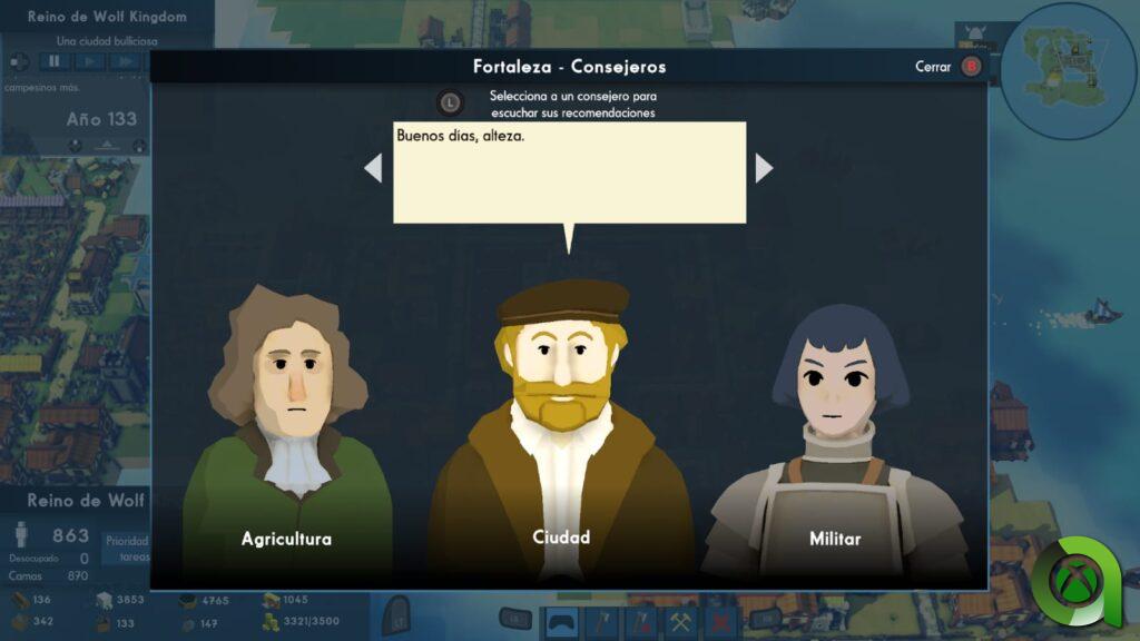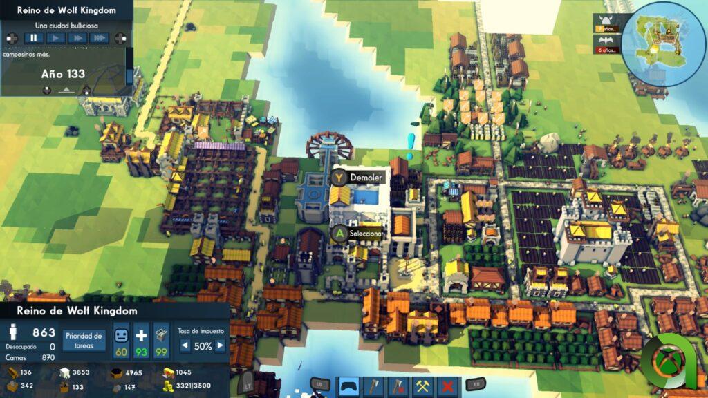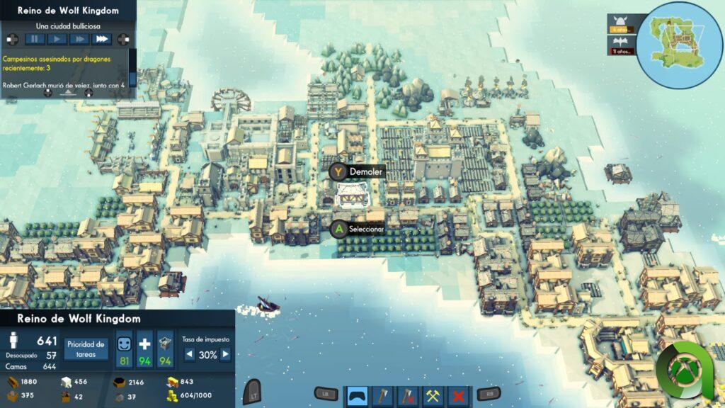 Un recuadro adicional, ubicado en la esquina superior izquierda, proporciona información crucial para abordar las dificultades de tu reino y acelerar el desarrollo de acciones en tu ciudad. Para los jugadores estratégicos que requieren tiempo para reflexionar sobre sus decisiones, este menú ofrece la opción de pausar la partida, permitiendo una gestión más efectiva de las acciones. Aunque se ha logrado un excelente trabajo en la adaptación de los controles para consolas, no podemos negar que los juegos de estrategia en tiempo real siempre resultan más gratificantes jugarlos en PC.