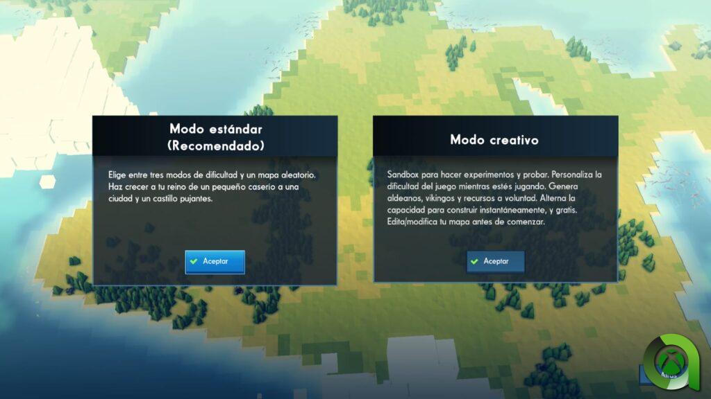 Al iniciar el videojuego, nos encontramos con dos modos distintos. Uno de ellos es el modo estándar, en el que debemos seleccionar la dificultad que influirá en la partida, mientras que el otro es un modo creativo que nos brinda total libertad para llevar a cabo nuestras acciones, similar al formato de juego que ofrece Minecraft.