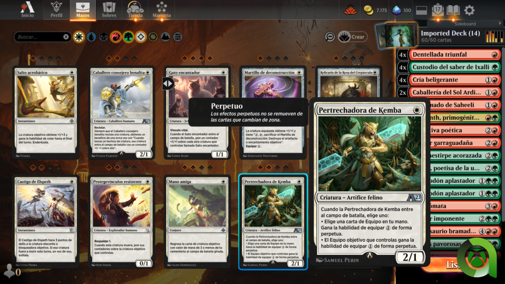 Por otro lado, jugar multijugador es realmente sencillo. Tan sólo tendremos que seleccionar el modo de juego que queramos, seleccionar un mazo construido para dicho formato y clicar en jugar. En tan sólo unos segundos ya estaremos en una partida. También se debe mencionar que la creación de mazos resulta bastante sencilla e interactiva ofreciendo una opción muy visual y cómoda para los jugadores. Desde la pestaña de Mazos podremos crear nuevas barajas, editar o incluso importar listados de algún mazo que queramos probar. Eso sí, para poder jugar con estos mazos tendremos que contar con las cartas que lleva cada uno.