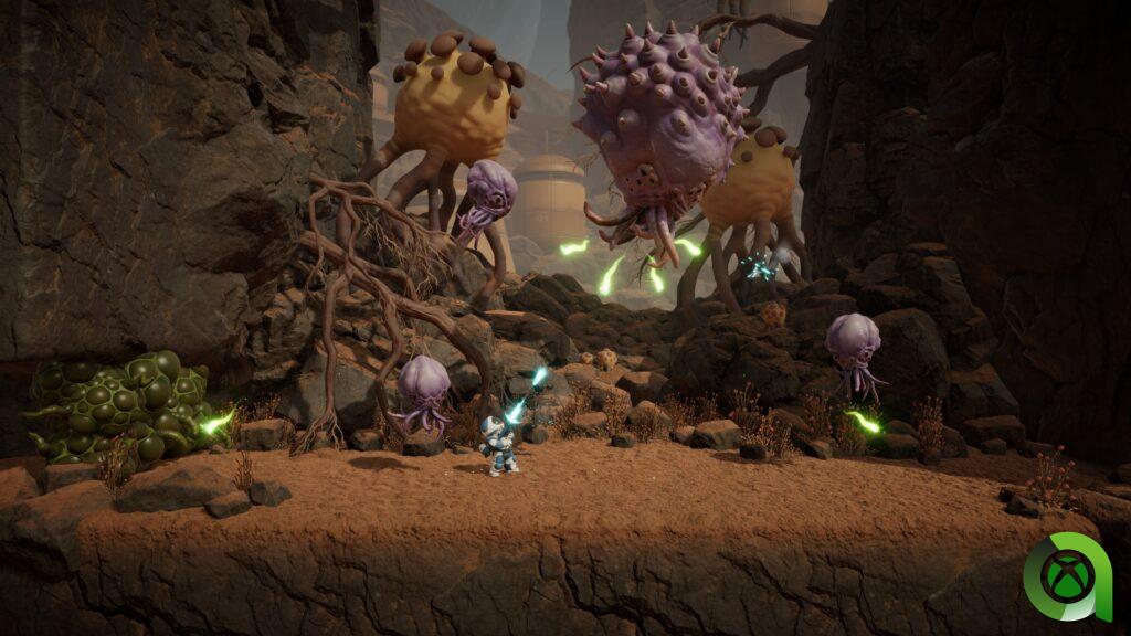 El combate en The Mobius Machine se resuelve a base de disparos y la verdad es que resulta bastante satisfactorio. El título nos plantea enfrentamientos contínuos dinámicos y emocionantes contra una amplia gama de enemigos, que incluyen desde fauna local hasta máquinas abandonadas o colonos infectados. Nuestro astronauta usa un rifle al que podemos añadirle dos tipos de disparo al mismo tiempo que podremos elegir entre un variado arsenal. Al principio, dicho arsenal estará vacío pero podremos ir ampliándolo y mejorándolo con los planos que encontremos durante nuestra aventura.