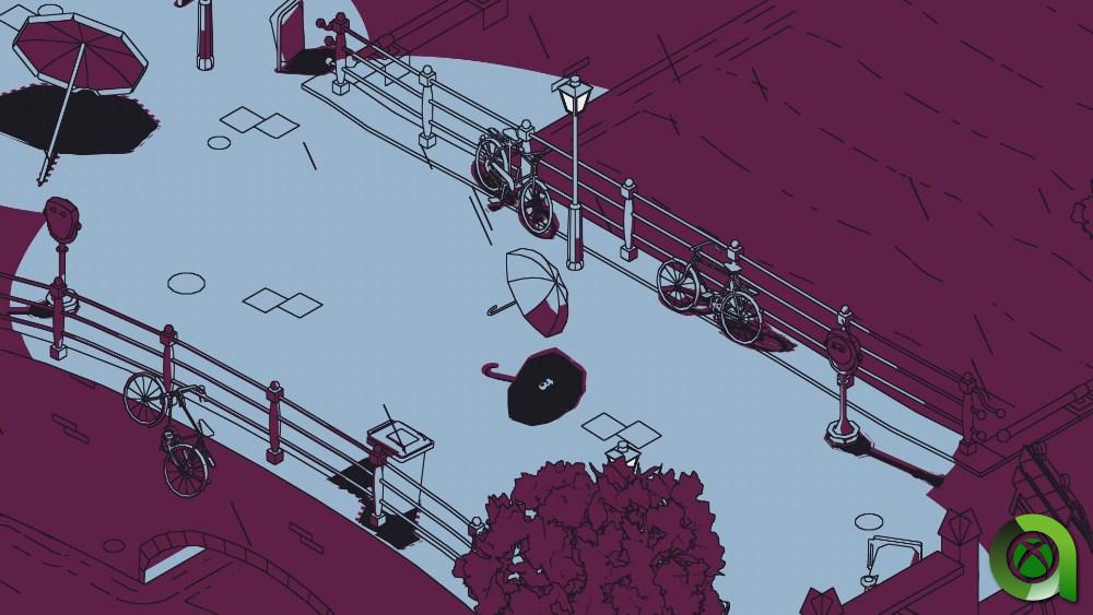En lo estrictamente jugable, como decía, lo que haremos básicamente es saltar de sombra en sombra en escenarios, del punto A al punto B. La jugabilidad es muy simple y se explica de manera muy rápida. Podremos dar saltos y deberemos saltar entre las sombras que arrojan todos los objetos y personas de un escenario para llegar a nuestro objetivo. Apretando el botón RT, se mostrará hacia donde debemos ir, así que tocará ir, poco a poco y aprovechando el escenario, hasta allí. Una vez allí, digamos que acaba ese escenario y empieza otro. Y tenemos muchísimos escenarios en el juego. De duración bastante breve, se sentirá un ritmo cómodo de avance en el juego.