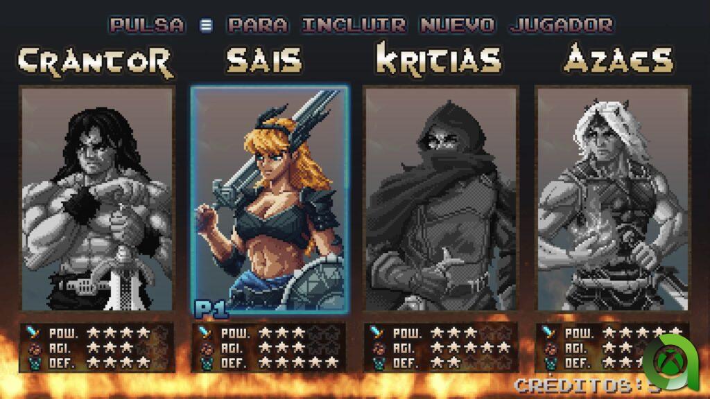 En Abathor no esperéis una historia que os cambie la vida, ni muchísimo menos. Aunque sí que tiene una narrativa, lo cierto es que esta más bien funciona a modo de excusa para dar paso a los mamporros con nuestro personaje escogido, de entre los 4 disponibles (más adelante ahondaremos en esto). La jugabilidad es igualmente simple, contando solo con un botón de ataque básico, otro de ataque fuerte, uno más para rodar/esquivar y el último para saltar. La mayor peculiaridad radica en que el botón de ataque (X en Xbox) también sirve para hacer uso de un objeto o arma extra que hayamos recogido por el mapa, si lo pulsamos a la misma vez que el botón hacia arriba de la cruz direccional.
