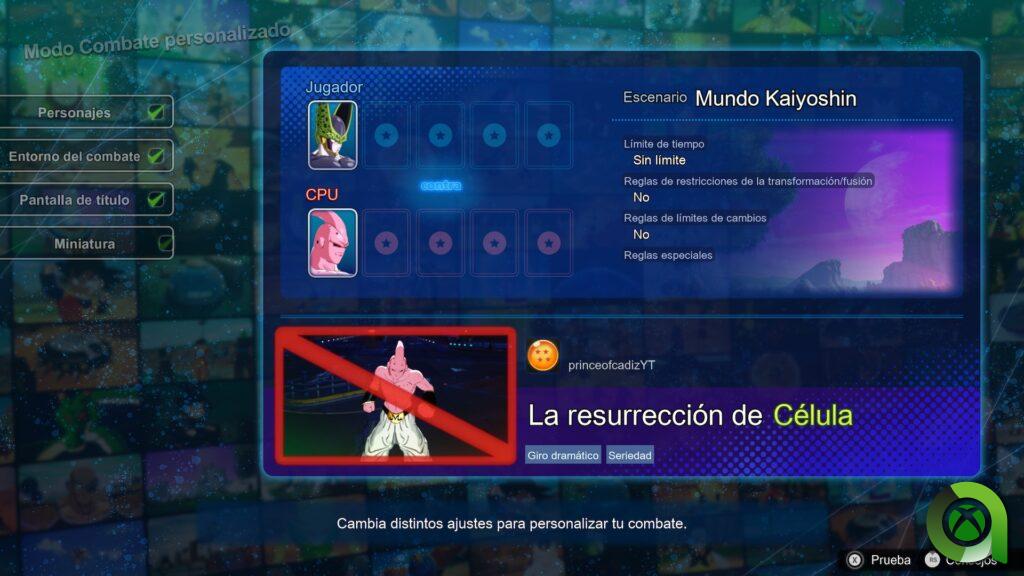 Cambia las escenas de presentación o de despedida, los personajes involucrados, las frases que dicen (entre una selección, ya que no puedes escribir cualquier cosa), e incluso las consecuencias no canónicas que tiene la finalización de dicho altercado en el mundo de Dragon Ball, ya sean negativas o positivas. Después, ponle un nombre, una presentación que hará las veces de comienzo de un episodio de la serie, y una imagen a modo de miniatura/vista previa a tu creación para, por fin, compartirla con todos.