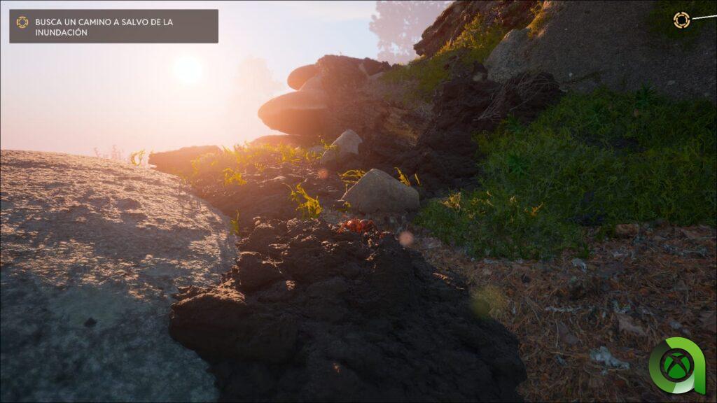 Lo primero que llama la atención de esta aventura reside en la calidad gráfica que atesora. Desarrollado con el potentísimo Unreal Engine 5, el juego nos deja estelas completamente fotorrealistas que pueden asombrar al jugador. Principalmente aquellas donde la iluminación toma partido. Además de esto, los modelados de los diferente insectos cuentan con un detalle asombroso y da gusto verlos. Igualmente, sus escenarios están repletos de vida y están recreados con gran acierto. Al igual que otros juegos como Grounded, poder disfrutar de este mundo en miniatura siempre llama la atención. Si bien es cierto que algunas animaciones no están tan bien realizadas como el resto de componentes del juego, sin embargo el resultado sigue siendo notable.