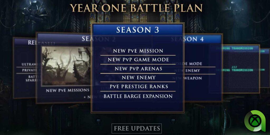 Habrá dos nuevos Capítulos de Marines Espaciales en la 3ª Temporada. Estos Capítulos obtendrán cosméticos nunca vistos a medida que se introduzcan, pero solo los poseedores del Pase de Temporada obtendrán nuevos Paquetes de Capítulos. Por el momento, no se sabe qué Capítulos se añadirán en la Temporada 3, pero se ha publicado otra información sobre lo que recibirán. Los Packs que llegarán con la Temporada 3 incluyen: