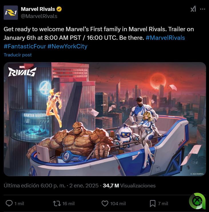 Así es, La Cosa, la Antorcha Humana, la Mujer Invisible y Mr. Fantástico estarán uniéndose al Free to Play basado en los universos de Marvel. Aunque aún no tenemos una fecha de lanzamiento concretada, sí que sabemos que este mismo 6 de enero, día de los Reyes Magos a las 17:00h (hora peninsular española), recibiremos un tráiler de presentación de estos míticos personajes de «La Casa de las Ideas». La Temporada 1 del juego es inminente, por lo que al inicio de esta (o durante) es cuando podríamos ver la adición de los mismos.