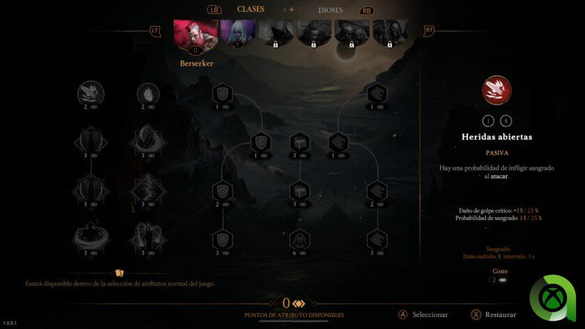 Al finalizar cada run, de una duración media de 15 minutos (que podemos ver en un contador en pantalla), obtenemos las estadísticas de partida así como las monedas conseguidas. Gracias a estas monedas podemos obtener puntos de habilidad para asignar a cada personaje y cada Dios. Esto nos dará la posibilidad de aumentar las estadísticas base de nuestros personajes así como de mejorar las propias que nos da cada habilidad que elegimos al subir de nivel. Al completar por primera vez cada mapa en dificultad normal, desbloquearemos el siguiente mapa, así como el siguiente personaje acompañado de nuevos dioses.
