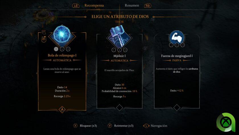Si bien no es algo que destaca, especialmente debemos darle su espacio. El apartado técnico cumple con los estándares actuales. No presenta bugs visuales ni glitches gráficos de ninguna clase. Hablando de su apartado artístico, el diseño puesto en los personajes y enemigos durante el juego así como los entornos consigue reflejar fielmente que nos encontramos en diferentes reinos de la mitología nórdica. Esto lo vemos reflejado también en el diseño que se hace a los dioses y a los no tan dioses. Los retratos de cada uno de ellos permite hacerse una idea de su poder así como de su personalidad a partir de ellos. La banda sonora nos acompaña a través de los menús del juego así como de nuestras run por los reinos mitológicos nórdicos cumpliendo en su cometido.