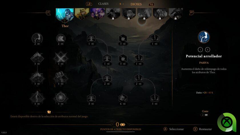 Al finalizar cada run, de una duración media de 15 minutos (que podemos ver en un contador en pantalla), obtenemos las estadísticas de partida así como las monedas conseguidas. Gracias a estas monedas podemos obtener puntos de habilidad para asignar a cada personaje y cada Dios. Esto nos dará la posibilidad de aumentar las estadísticas base de nuestros personajes así como de mejorar las propias que nos da cada habilidad que elegimos al subir de nivel. Al completar por primera vez cada mapa en dificultad normal, desbloquearemos el siguiente mapa, así como el siguiente personaje acompañado de nuevos dioses.