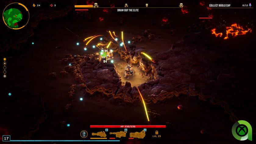 El sistema bullet hell permite favorecer tus estadísticas cavando, picando y matando. Cuando superas el grado en el que te encuentras, se te permite desbloquear una mejora. Hay que elegir sabiamente porque puede hacer que te debatas entre la vida y la muerte.