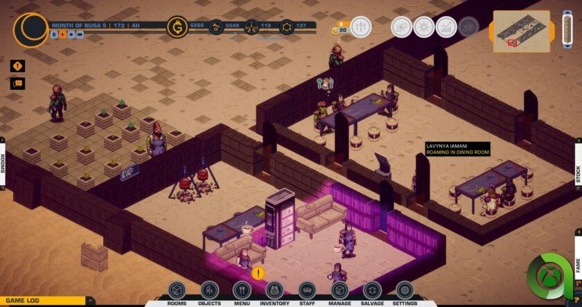 Otro elemento clave es el personal. Los contratamos directamente de entre los clientes (aunque no mientras comen, claro), y cada trabajador tiene roles específicos como el de cocinero, camarero o constructor, además de estadísticas únicas. Antes de contratar a alguien solo vemos una de sus estadísticas, pero tras hacerlo se revelan todas y estas deberemos tenerlas muy en cuenta a la hora de asignar uno u otro rol. A mejores estadísticas, más alto será el salario que nos piden, lo que obliga a gestionar bien el presupuesto.