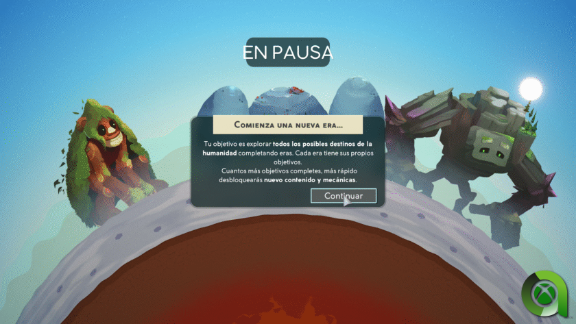 Un resumen, a grandes rasgos, es que durante el juego debemos avanzar de una era a otra dependiendo siempre en cumplir ciertos objetivos dentro de tus ciudades, relacionados con recursos, tecnología, cultura y expansión. El avance de la misma permite desbloquear nuevas habilidades, bioticas y proyectos, haciendo que el juego evolucione y se vuelva más complejo. Las situaciones que se irán sucediendo ya sea por las civilizaciones, los desastres naturales o las mismas deidades dará variedad a como tendremos que superar las eras.