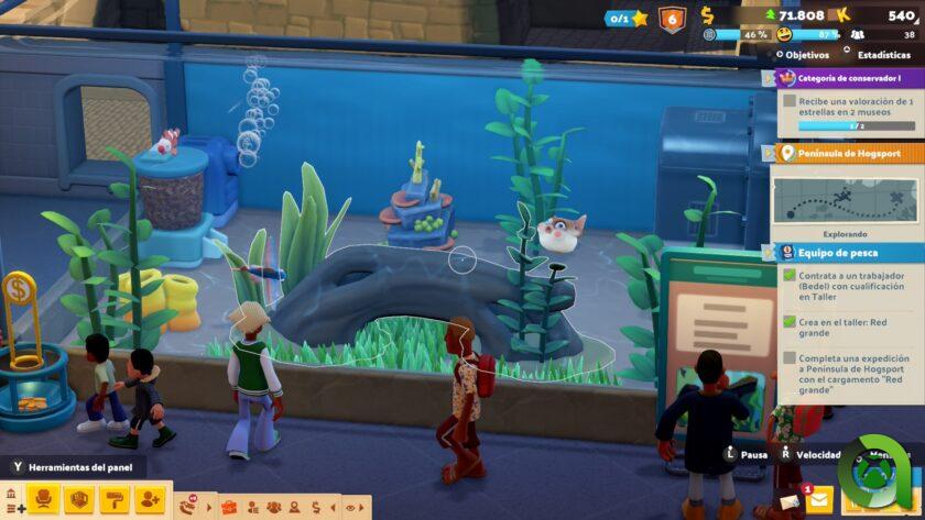 En cuanto a rendimiento, el juego funciona perfectamente incluso cuando nuestro museo empieza a estar bastante concurrido. El único problema de rendimiento «apreciable» es una pequeña rascada de fotogramas al cargar nuestra partida. Más allá de eso, el juego funciona perfectamente.