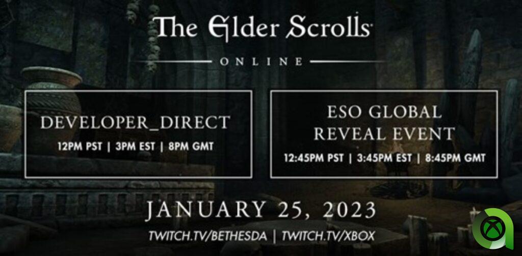 Mañana, miércoles, 25 de enero a las 21:00 (hora peninsular), no olvides pasarte por twitch.tv/bethesda y ver los directos ininterrumpidos de The Elder Scrolls Online, ¡donde se presentarán más detalles de la aventura de 2023! A partir de las 21:00 (hora peninsular), Xbox y Bethesda presentarán el directo Developer_Direct con nuestro primer gran anuncio de TESO del año, que nos permitirá disfrutar de un avance de la próxima gran aventura del juego. Además, inmediatamente después del Developer_Direct, ZeniMax Online Studios celebrará la presentación global de TESO de 2023. En ella se hablará…